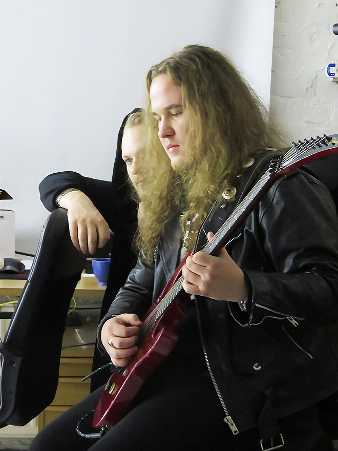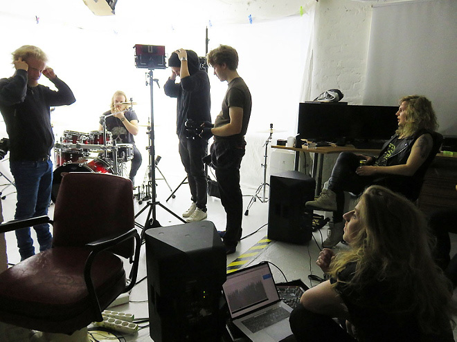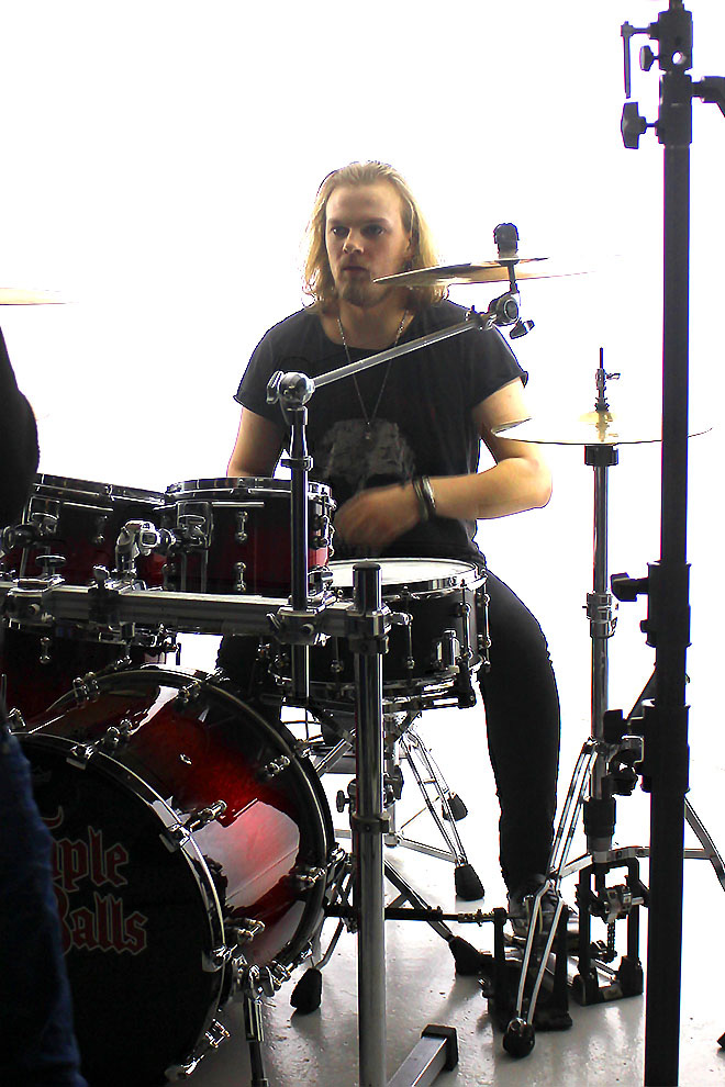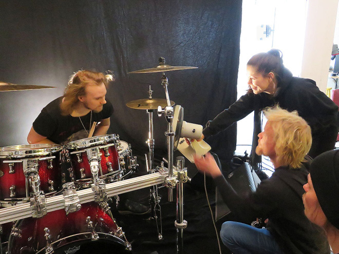 5人のメンバーのうち、4人がフィンランド北部のオウル在住ということで、4人はオウルから車でフィンランド南部に位置するラハティに前夜遅くに到着。翌朝9時からミュージックビデオ撮影に。私が到着したのがお昼頃で、すでにいくつかの撮影を終え、ちょうどドラマー、アンッティの撮影が行われていました。