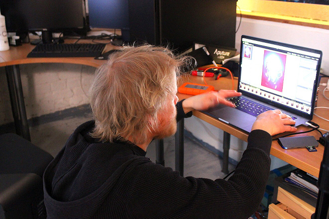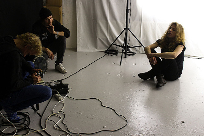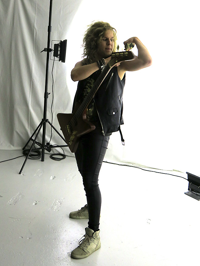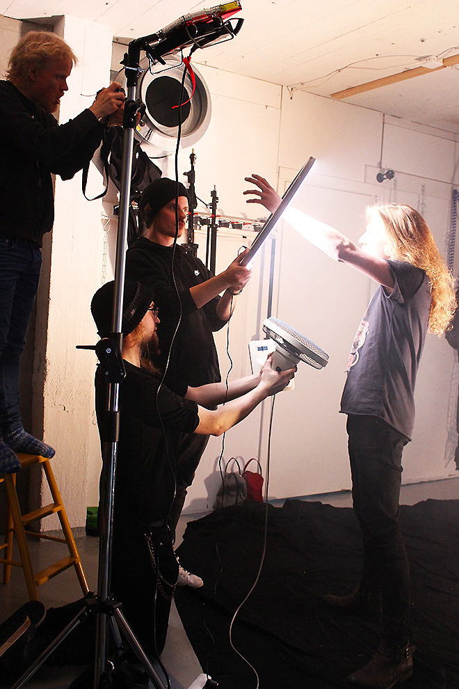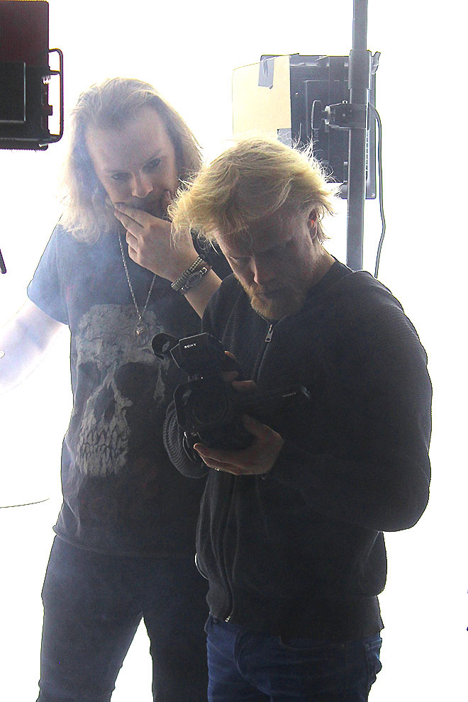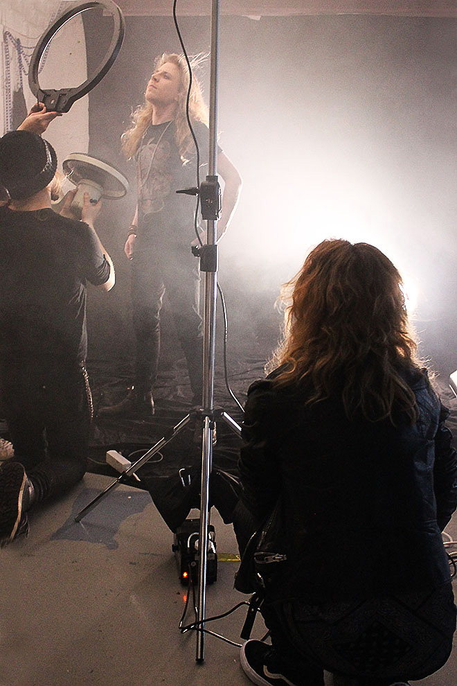今回のミュージックビデオの監督はフィンランドの人気ロックカメラマン、ヴィッレ・ユーリッカラ!ヴィッレはこれまでにNightwish、HIM、Apocalyptica、Michael Monroe、The 69 Eyes、Santa Cruzなど実に数多くの人気バンドやアーティストの写真を撮ってきました。フィンランド以外でもBackyard Babies、一時アメリカLA在住中にはGood CharlotteやSlash、Chester Benningtonなども撮ったことがあり、The 69 Eyesの北南米&アジアツアーに同行し写真集「Route 69」を発売した他、Nightwishの本「Dark Passion Gallery」、Apocalypticaの本「Photobook」も発売しています。さらに近年はMichael Monroe、Apocalyptica、Reckless Love、Sonata Arctica、The 69 Eyes、The Local Band、Santa Cruz、Bullet for My Valentineなどなどここにはあげきれないぐらい実に数多くのミュージックビデオも手掛けています。ヴィッレと最後に会ったのは2年ほど前ヘルシンキ市立美術館HAMで開かれていた彼の撮影したHIM写真展でのこと。覚えてくれてるかな?と思ったのですが、スタジオに着くと暖かく迎えてくれました。