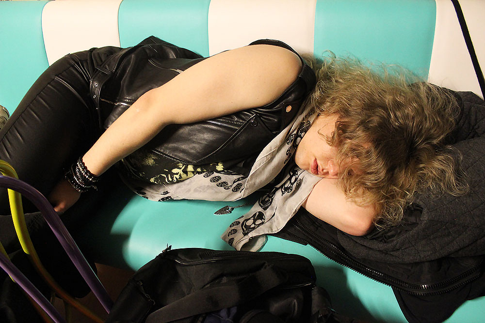 休憩所をのぞいてみると、前日の長距離ドライブで疲れていたのかお昼ね中のイミが。