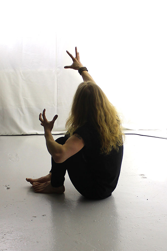 無事カマを持っての撮影を終え、カマは元あった場所に戻されました。席を外してしばらくしてスタジオに戻ってみるとアルデは裸足で床に。手の動きの指導を受けるアルデ。ミュージックビデオでも演技力がいるものですね。