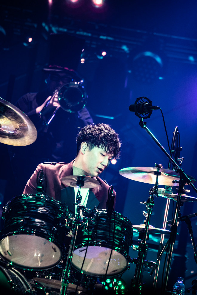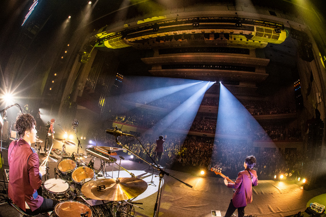 NHKホールでの公演はメンバー4人のほかにパーカッション、ホーンセクション、キーボードのサポート5名を加えた9人編成となっており、バンドサウンドがより深みのあるものに感じられた。