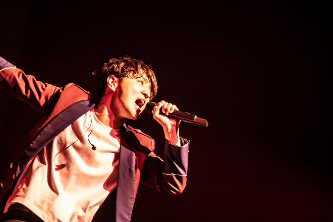 ホーンセクションのサウンドが効果的なアップテンポナンバー「ブラザーズ」、炎の特効で熱くなった「FIRE GROUND」、ライブの定番曲「犬かキャットかで死ぬまで喧嘩しよう!」などで盛り上げ、銀テープが舞う中、大ヒット曲「ノーダウト」を披露した。