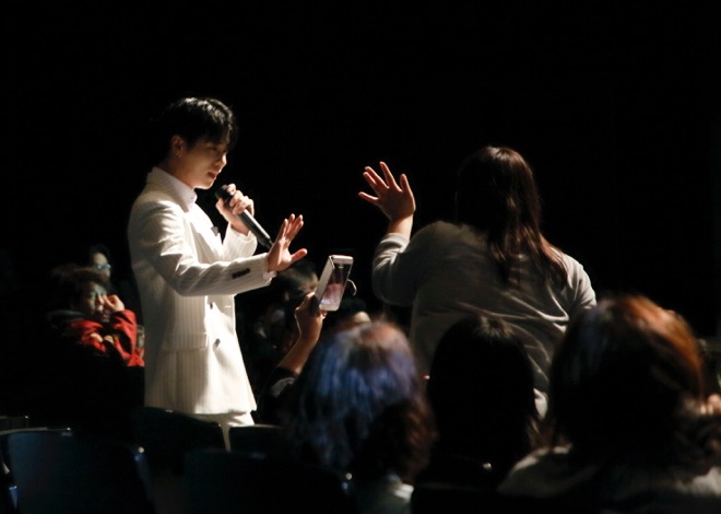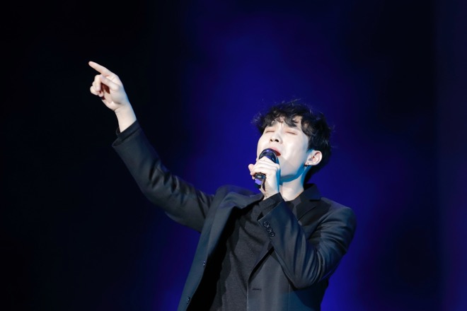 続いては、“歌で胸を響かせる歌手”のOH SEH WOONG。「日本に初めて来ました。みなさんにお会いするのが楽しみで、昨日は眠れませんでした」と練習したという日本語で自己紹介をした後、観客ひとりひとりに語りかけるように甘い歌声で「너만보여」を聴かせた。歌い終えた本人が、「いかがでしたか?」と問いかけると客席から大きな拍手が。最後に本人のリクエストで観客がスマフォのライトを点灯。灯りがゆったりと揺れる中、「그밤 (He’s night)」を伸びやかな歌声でしっとりと歌った。