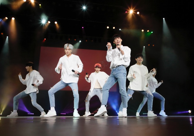 アイドル育成型サバイバル番組『PRODUCE101』シーズン2に出演したヨンジンが所属するボーカルダンスグループがAWEEKだ。白いシャツにジーンズという爽やかな衣装で登場した6人は、とびきりの笑顔を振りまきながら新曲「보면 볼수록 (The More I See)」をパフォーマンス。観客の手拍子を誘って披露した嵐の「Only One」ではひとりずつ歌い繋ぎ、ぞれぞれの魅力をアピールした。ラストはオリジナル曲「One Love」で爽やかさとカッコよさを兼ね備えたステージを観せた。