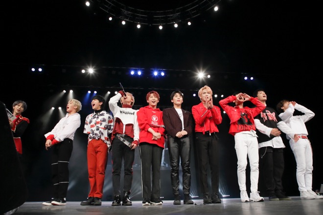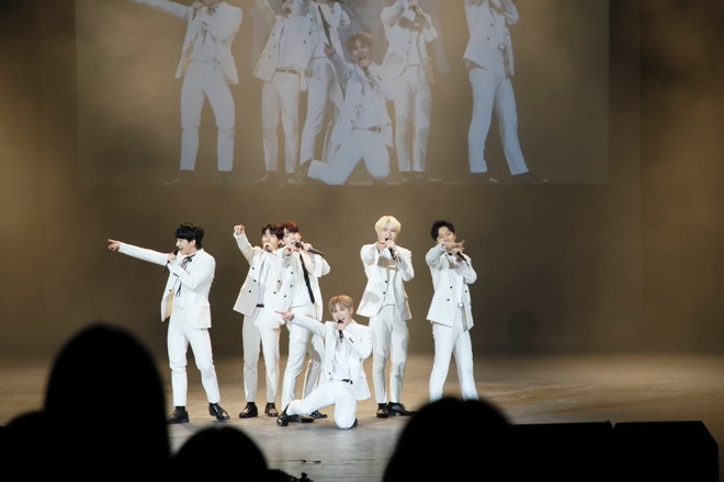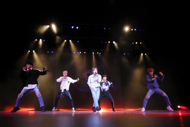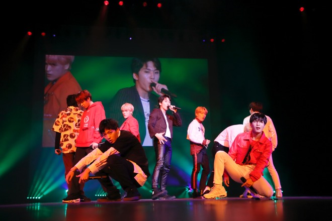日本での活動開始から4年目を迎えた5人組ボーイズグループ、INFACTの登場には黄色い歓声が飛ぶ。「今日は最高の公演を準備しましたので、みなさん、たくさんの応援をお願いします!」とイサン。「次の曲は、みんなのことです」との曲紹介でシングル「빛나 (The light)」から、タイプの異なる3曲を披露。“インパクトのある活動をする”という覚悟と、“I’M FACT=本物の音楽を聞かせる”という意味を盛り込んだグループ名通り、観客に強烈なインパクトを与えた。