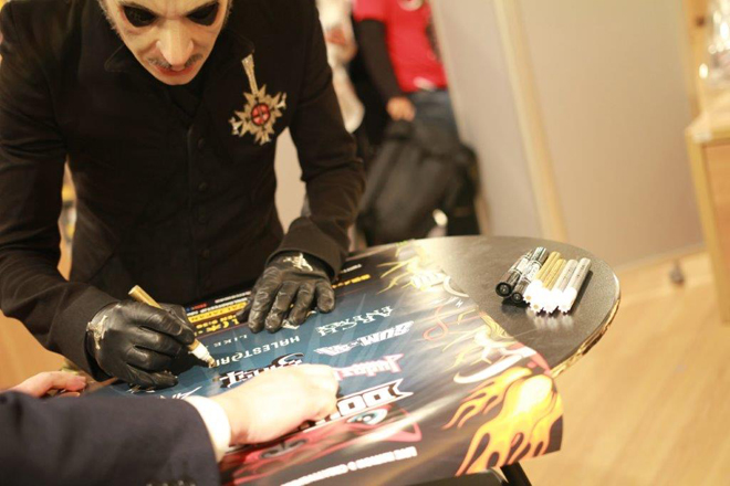 3月21日(木・祝)に開催された<DOWNLOAD JAPAN 2019>にて日本で約4年ぶりのライヴを披露したスウェーデン出身のバンド、ゴーストが、日本初のサイン会のため夜の渋谷に現れた。