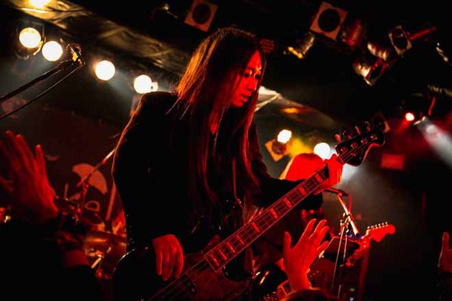 彼らはまだ止まることを知らない。「ヨルノカーテン」でもう1度観客にタオルを振り回させてその場を盛り上げると、「みんなここまでよく見守ってくれました、ありがとう。正直、この企画を考えてから無理じゃないかなって……でも、案外できるもんだなって。それもすべて、あなたたちとスタッフ、そしてバカな仲間のおかげです」と唯は感謝を述べた。温かな空気が場内に流れる中、バラード曲「夕立」で本編は締め括られたのだった。そして、たくさんの声に呼ばれて再度ステージに登場したメンバーは何とも晴れやかな表情を浮かべていた。アンコールのラストに用意された「アラン」を演奏する前、4人は今感じていることを口にしたのだが、皆一様に、こうして無事にバンドが活動9周年を迎えられたことの嬉しさと、これからに対する希望を語っていた。その中でも印象に残ったのが唯の言葉である。実は昨年から自分の父親が病と戦っていること。それでも今日のライヴに向けて「気にせずにやってこい」とビデオレターでメッセージを送ってくれたそうだ。家族が頑張っているから自分もこうして必死に頑張ることができる。そのうえで、自分にとってはメンバーとファンも同じぐらい大事な家族だと。そして、「これだけ集まってくれたら心強い」と、しっかりと前を向いて話す唯の姿はどこまでも頼もしく、「アラン」を演奏した後に「お前ら、俺たちの誇りです。素晴らしい1日をありがとうございました!」と大きな声で言うと、フロアから今日1番ともいえる大きな拍手が贈られたのだった。