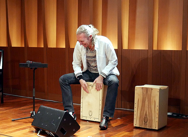 「ヤマハのおかげで日本にすばらしいカホンが入ってきて、絶対多くのミュージシャンがこれを楽しんでくれると思います。日本のミュージシャンの方がこのパーカッションを試打したら、すごく衝撃を受けて気に入ると思います。ぜひ、試打して音を確かめてください」と締めくくった。