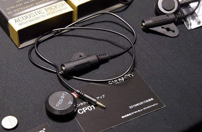 2017年に発表したピックアップもチューナー同様にマグネットを採用。表板裏側のボディ内部にマグネット製のベース部分を装着し表側にコンタクトピックアップを固定して使用する。カンタンに着脱できるので、クラシックギターなど、ピックアップが搭載されていないギターの音響をアンプなどで増幅する際に役立つ製品となっている。ギターに加工をすることなく取り付けできるのも大きな特徴だ。ピックアップ自体にボリュームがついているほか、ケーブルの取り外しもカンタン、ストラップピンにジャックを装着できるのもポイントだ。発売は5月10日。価格はチューナーが2,000~3,000円、ピックアップが7,000~8,000円。