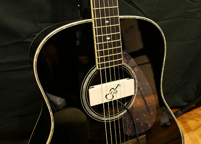 ▲アコースティックギターのサウンドホールに取り付けるサウンドホールピックアップ「SH-1」はSingleタイプ。ノイズに強いHumタイプの「SH-2」もラインナップされる。