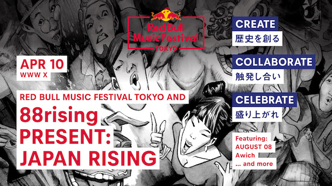 なお、この後4月10日(水)には、88risingと<RED BULL MUSIC FESTIVAL TOKYO 2019>のコラボレーションによる<Red Bull Music Festival Tokyo and 88rising present: Japan Rising>が東京・WWW Xにて開催される。同イベントには本国アメリカから来日するAUGUST 08をはじめ、Awich、Jin Dogg、CIRRRCLE、Young Cocoの出演が決定している。
