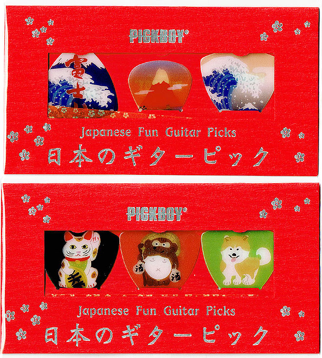 歌舞伎や富士山、寿司など日本の伝統的な絵柄のギターピックが、ピックブランドのPICKBOYから登場。「日本のギターピック・ギフトパック」として6種類が発売された。