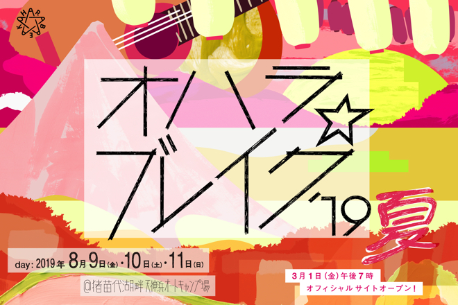 8月9日(金)、10日(土)、11日(日)の3日間、福島・猪苗代湖畔 天神浜にて開催される音楽&アートフェスティバル<オハラ☆ブレイク ’19夏>の第一弾参加アーティストが発表となった。