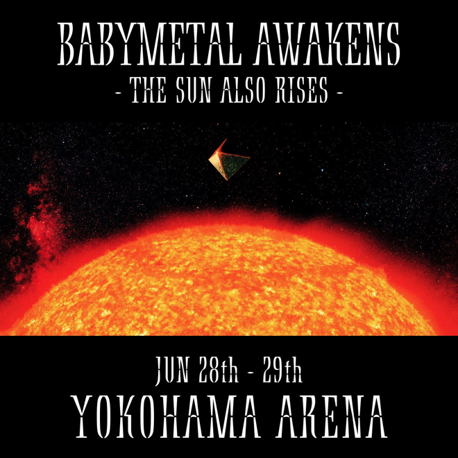 日本公演<BABYMETAL AWAKENS – THE SUN ALSO RISES ->は6月28日、29日に神奈川・横浜アリーナにて、<BABYMETAL ARISES – BEYOND THE MOON – LEGEND – M ->は7月6日、7日に愛知・ポートメッセなごやにて開催される。さらなる詳細やチケット販売に関する情報は、後日オフィシャルサイトで発表される予定となっている。
