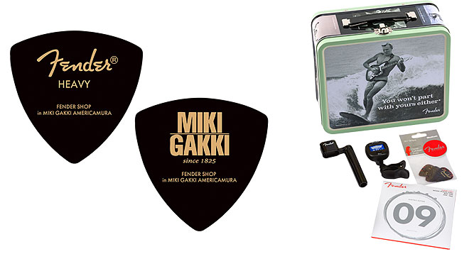 今回のオープニングを記念して、4月1日(月)より4月16日(火)までの期間、来場した人にはオリジナルピックをプレゼント(数に限りあり。なくなり次第終了)。また、同店舗で5万円以上フェンダー製品を購入するとフェンダー製ランチボックスを先着で30名にプレゼントするキャンペーンを実施する。