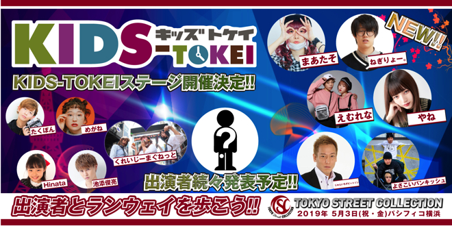<Tokyo Street Collection>では出演者によるライブパフォーマンスやファッションショーのほか、「KIDS-TOKEI」とのコラボステージや、この時期一番輝いた・頑張ったキャラクターNo.1を決める「がちキャラグランプリ」、国内トップキャバドレスメーカーのひとつであるRyuyuとのタイアップによるコンテスト「ミス・キャバドレス2019」などが開催される。