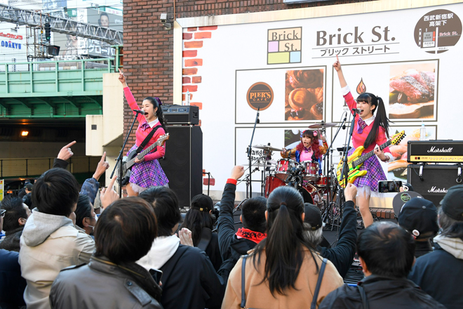 西村まさ彦、若旦那、DROP DOLL(チヒロ/Dr&Vo、ユイナ/G&Vo、ユキノ/B&Vo)が4月3日、東京・西武新宿PePe広場にて行なわれた<映画『JK☆ROCK』公開直前トーク&ライブイベント>に登場した。