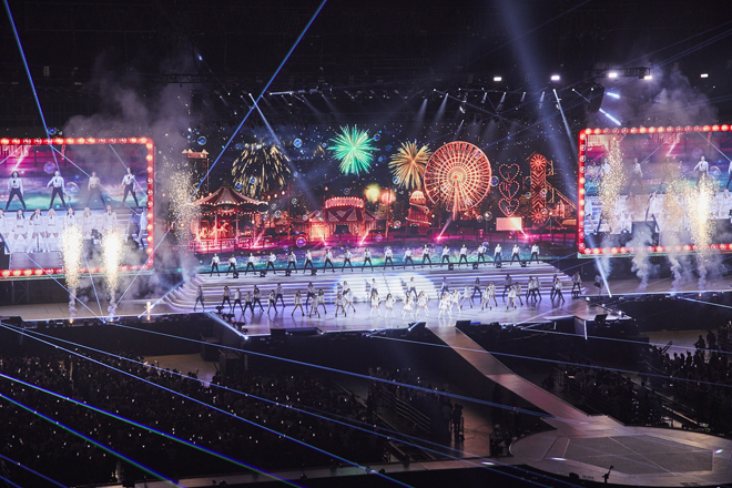 そんな感動に浸るのもつかの間、LEDに突如緊急告知の映像が流れ、7月17日(水)にJAPAN 4th SINGLE「HAPPY HAPPY」、7月24日(水)にJAPAN 5th SINGLE「Breakthrough」と2週連続のシングルリリースを発表し、第二章のスタートを告げた。2つのシングルは相反するコンセプトとなっており、日本デビュー2周年を経た新しいTWICEを魅せていくようだ。