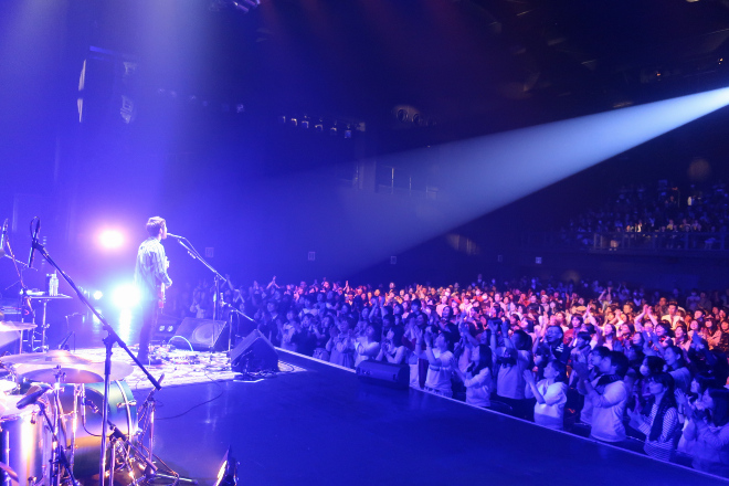 弾き語りパートの後は、 ドラム・よっちさんと、 ベース・なかむらしょーこさんを呼び込み、 各地Zepp公演だけのスペシャルな3ピースバンド編成で、 アルバム収録曲や、 ソロ曲を交えながら披露。 「自由で解放的なライブにしたい」というMCでの宣言通り、 時にパワフル、 時に繊細な演奏で、 会場の熱気は頂点に達した。