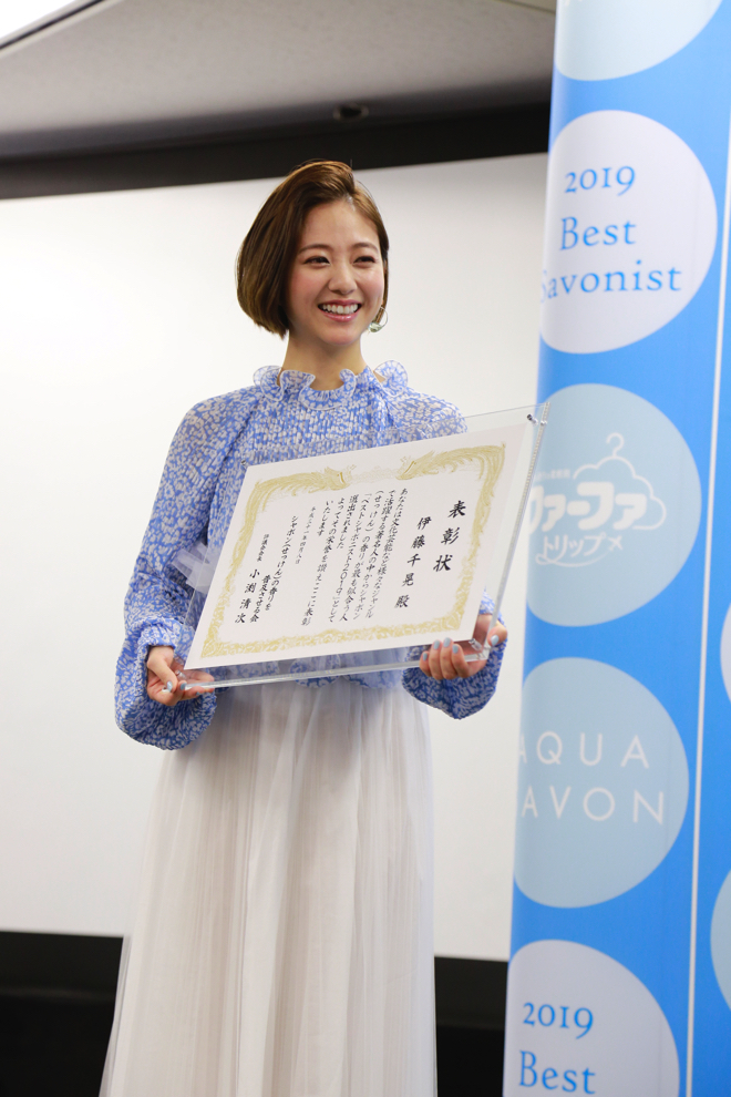 “男女問わず誰からも愛され、芯が強く、ファン想いで深い優しさがあり、綺麗でピュア感がある著名人”というのが選定の理由。メドウズ舞良とともに表彰された伊藤千晃は、「自身にとってのシャボンの香りとは?」という質問に、「気がついたら小さな頃からそばにあり、今も当たり前のように生活の一部にある香りです。清潔感があって優しく、どこか安心してホッとする瞬間があります。皆さんもせっけんの香りを思い出して、幸せな気持ちになっていただけたらと思います。」とコメントした。