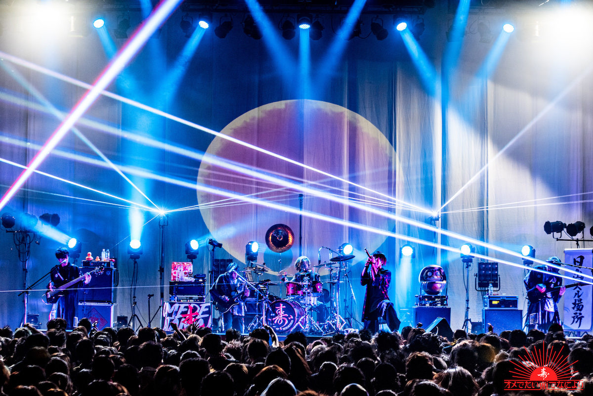 本編ラストに入る前に赤飯は回想をMCに入れた。四年前の2015年8月13日、オメでたとは違う形態で、同じ赤坂BLITZでの生誕祭ワンマンに臨んだ赤飯。「その時にめちゃめちゃ悔しい思いをしました」当時を知らない人はそれでいいんですと語りながらも、今日の思いまでに十分な下地があったことがそこに伺えた。「今思いっきり笑顔で全力で叫んで手を挙げて、ぱんぱんにここで一緒に歌ってくれているこの光景。もう俺、これで過去に最高の反撃ができたと思っています!」「君らがいつだってワシらのきっかけになっているんです。幸せの形は一人ひとり千差万別だと思う。でも、俺らのこのライブ、周りの人と一緒にすごした時間、そういうものが、君らのワクワクするもの、自分を前に進めてくれるものを考えるきっかけになると思って、ライブやってます」という赤飯のコメントに、オーディエンスからは歓声があがる。豪快な合唱とダブルピースが舞う「オメでたい頭でなにより」で本編は締めくくられた。