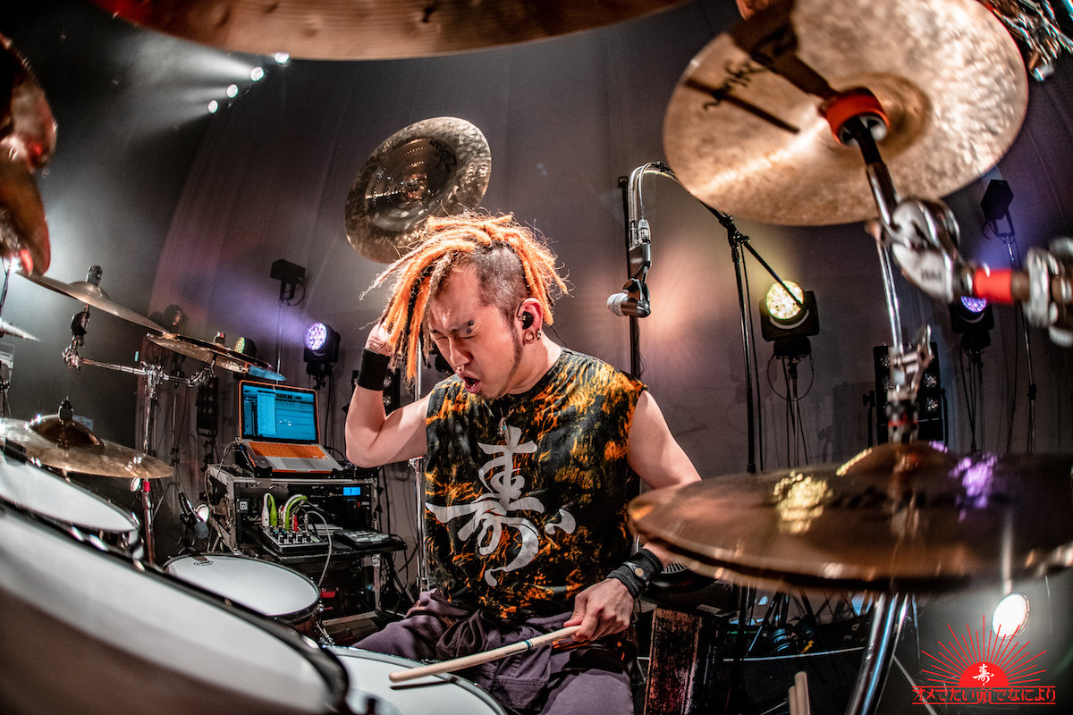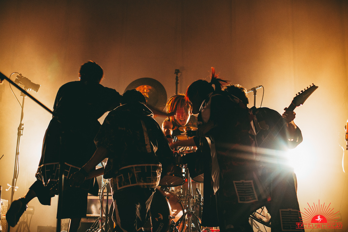 ライブ後半は、怒涛のラウドサウンドと赤飯のデスボイスで会場が“だるまさんがころんだ”に興じる「ダルマさんは転ばないっ」。この日の2階席にはファミリー向けの座席である“大五郎シート”が用意されていたが、赤飯が「ダ~ルマさんは~転ばないっ!」と絶叫し会場が停止するたびに大五郎シートのリアルキッズ達が夢中で笑っている声が響いた。「子供にウケるんやな…」と赤飯が感想をこぼし、ライブは最終局面へと向かっていく。