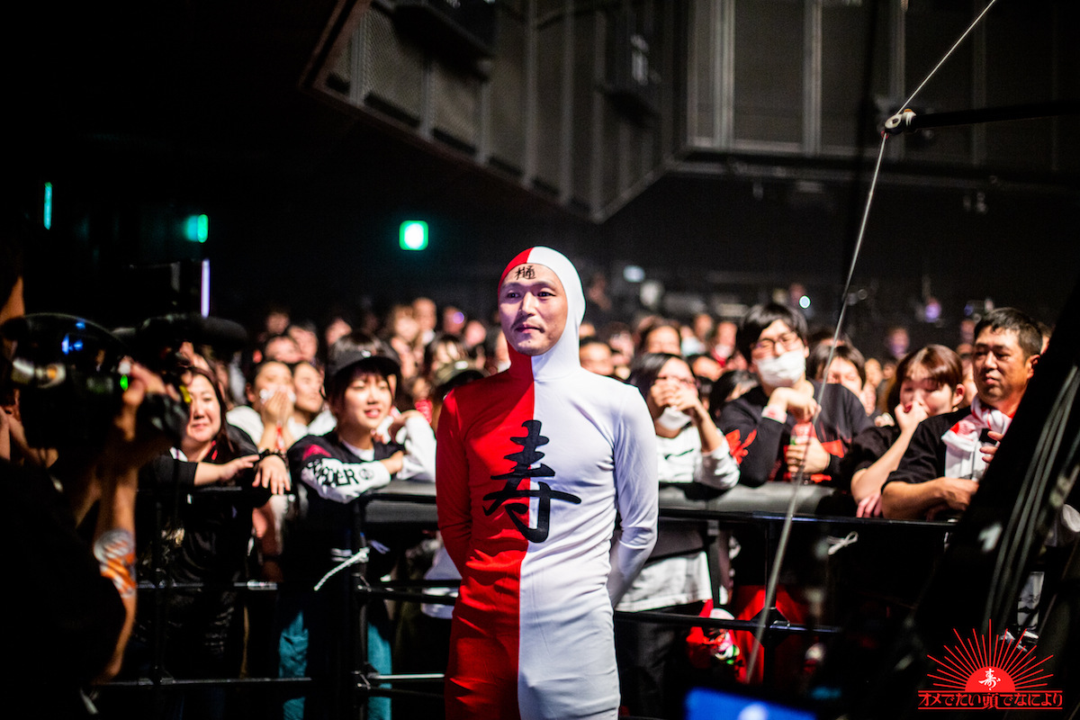「HELL“O”」では多彩な歌唱法を駆使したエモーショナルなパフォーマンスに器用さを感じさせ、基礎熱量も高いままに中盤では“オメでたがきっかけで結婚したカップルに触発されて生まれた楽曲”「ピ」を披露。さらにツアー全会場ごとの替え歌バージョンが存在する「鯛アップ」を、TVサイズ版に加え“ご当地Ver. 赤坂版”まで連続披露した。「推しごとメモリアル」では全員でダブルピースを掲げてダンス。さらに「鯛アップ」赤坂バージョンの歌詞に登場したイベンターの“土樋さん”が紅白タイツ姿の“寿マン”として登場する容赦のない人使いっぷりに会場も笑いでざわついた。