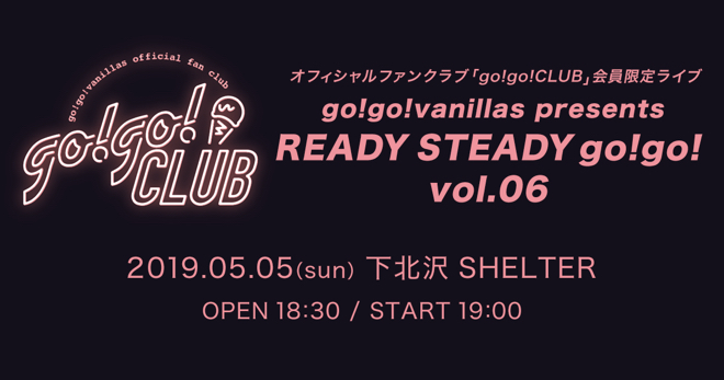 go!go!vanillasが5月5日=“go!go!の日”に、東京・下北沢シェルターにてオフィシャルファンクラブ「go!go!CLUB」の会員限定ライブ<go!go!vanillas presents READY STEADY go!go! vol.06>を開催することが発表された。