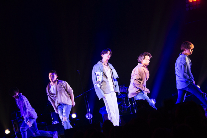 ダンサーが登場しソロデビューシングルのタイトル曲「Phenomenal World」をキレのあるパフォーマンスで披露すると、続けて佐々木和也、手島章斗が登場し、コラボレーション曲「ABSTRACT」と、JUN&イライのユニット曲「Face Off」を3人で力強く歌い上げると会場のボルテージは最高潮に。
