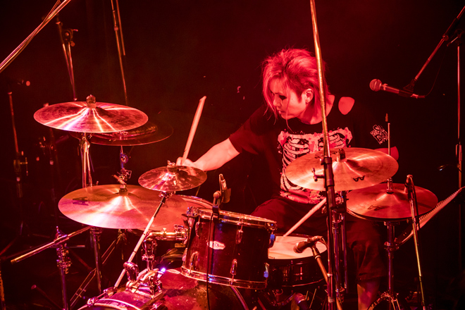 HAYATO:『NOIZ THE RIPPER』の曲で、自分が叩いた中で特に好きなのは「HELLO MURDER」と「Trap」です。僕はタム廻しをするのが結構好きで、「HELLO MURDER」はデモの段階でそういうドラムが入っていたから、“よっしゃっ!”と思って。ただ単に16分で廻すんじゃなくて、リニア・フレーズといってキックとタムを合わせて16っぽく聴かせるパターンも混ぜたので、叩いていてすごく楽しいんですよ。もちろん、曲自体も大好きですし。「Trap」は“いてまえ!”という感じの曲で、それをちゃんとパッケージできたというところで気に入っています。