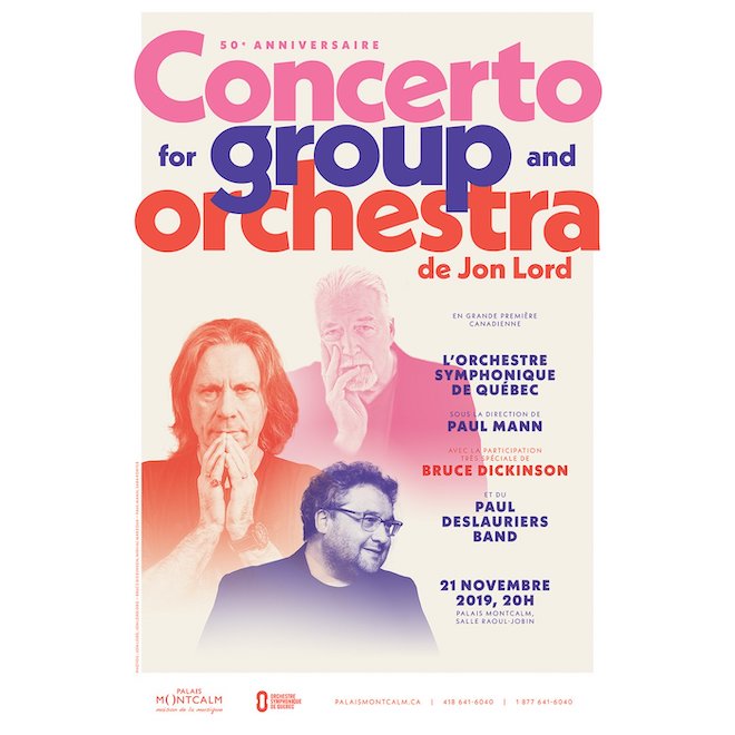 ジョン・ロードが作曲した協奏曲をディープ・パープルとロイヤル・フィルハーモニー管弦楽団が演奏したライブ・アルバム『Concerto for Group and Orchestra(ディープ・パープル・アンド・ロイヤル・フィルハーモニック・オーケストラ)』(1969年)のリリース50周年を記念し、11月にカナダ・ケベックで開かれる特別公演にアイアン・メイデンのブルース・ディッキンソンが出演する。