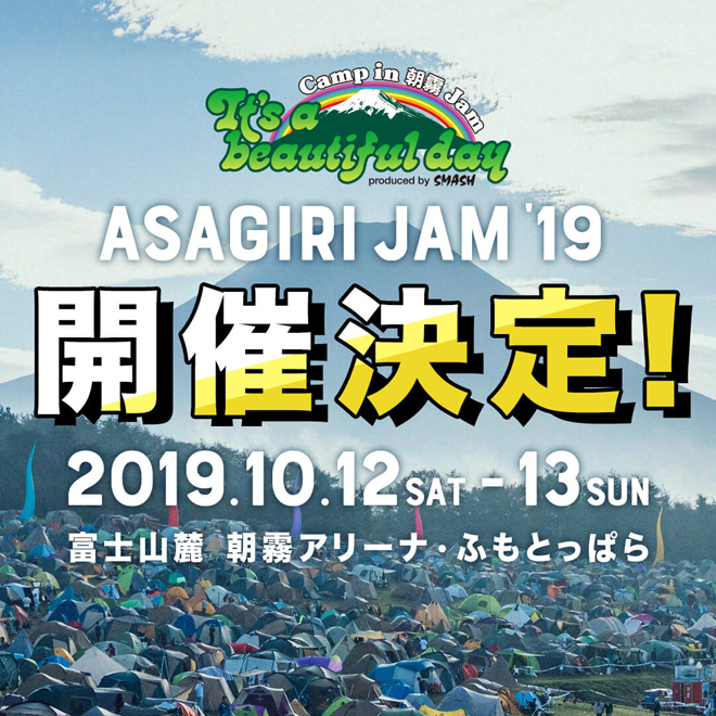10月12日(土)13日(日)に富士山麓 朝霧アリーナ ふもとっぱらにて、<ASAGIRI JAM ‘19>が開催されることが発表された。
