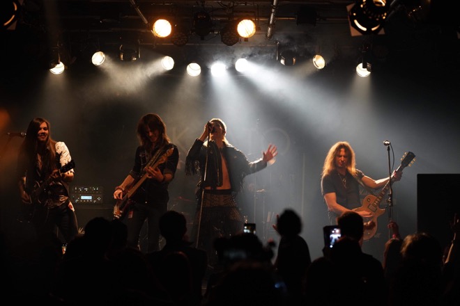 新作アルバム『スラム!』を引っさげて来日中のハードロック・バンド、カートが話題を集めている。彼らは、まさに新たなロックスター候補生というべきカート・ロウニー(Vo)とミカ・ノーティネン(B)というオーストラリア出身の若者たちを軸としながら、アメリカのテネシー州ナッシュヴィルを拠点に活動しているバンド。ナッシュヴィルは古くからカントリー・ミュージックの聖地として知られているが、だからこそスタジオやライヴハウスなども豊富で、音楽関係者や凄腕ミュージシャンも多い。今回の日本公演でカートとミカのふたりとステージを共にしているハンター・ロヴァン(G)、リッチー・ショール(G)、クリストファー・ウィリアムズ(Dr)も彼らがそこで出会ったミュージシャンたちで、クリストファーはアクセプトでの活動も並行中だ。
