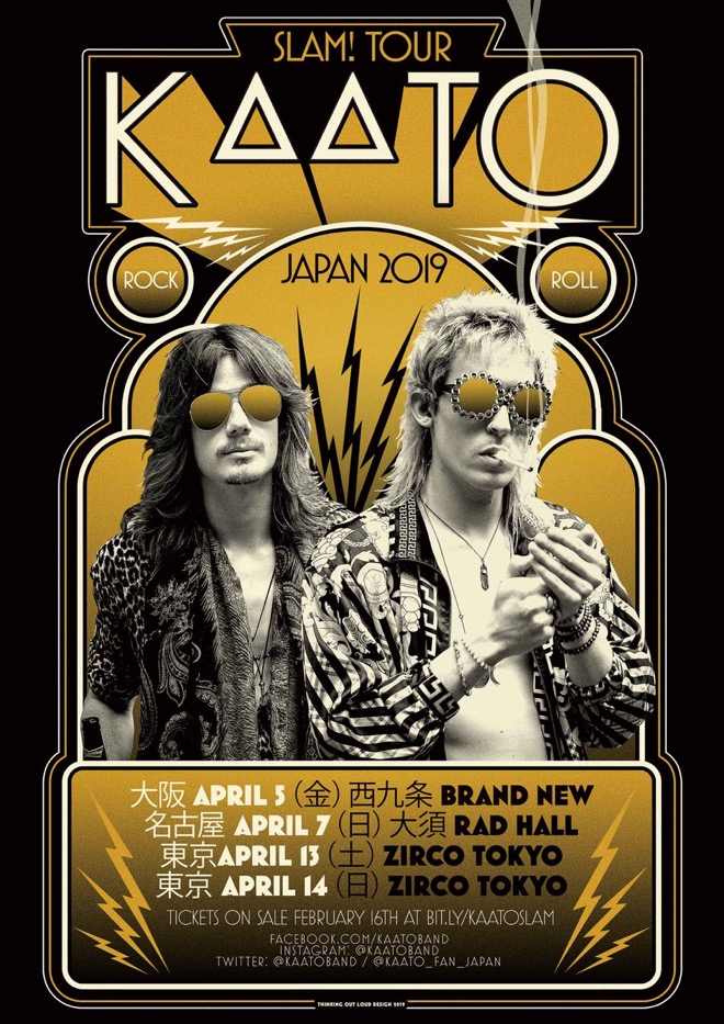 また、東京公演第一夜にあたる4月13日の午後には、同じ新宿にあるROCK CAFÉ LOFTにて筆者の企画によるイベント『白昼のクラシック・ロック狂騒会』が開催されるが、同会場にKAATOのメンバーたちが来場することも決定。KAATOファンを自認する人たちはもちろん、まだ『スラム!』を聴いていない方々も、まずその場で彼らの音と素顔に触れたうえで、ライヴ会場に足を運んでみてはどうだろう?