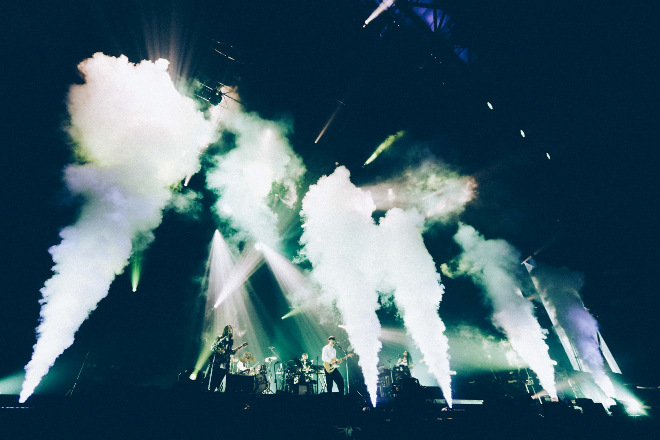 「moon」ではステージ上の大スクリーンに映し出された映像の中から宙に浮いた5人のシルエットが登場するという近未来的な演出でも沸かせ、終盤には「新宝島」「アイデンティティ」等をたたみかけるように披露。会場の盛り上がりも最高潮に達し、幕張メッセ公演は大盛況で幕を下ろした。