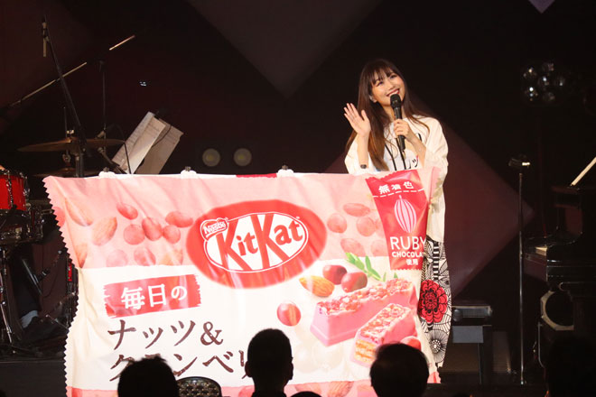 初日公演ではキットカットの新商品「キットカット 毎日のナッツ&クランベリー」のために書き下ろした新曲「kit palette」をアンコールで演奏する直前に、「キットカット 毎日のナッツ&クランベリー」の巨大パッケージがステージに登場するという、スペシャルなサプライズも。さらにこの「キットカット 毎日のナッツ&クランベリー」がお土産として来場者全員にプレゼントされた。ファンは想定外のサプライズと彼女のおもてなしの心遣いに、喜びの声をあげていた。