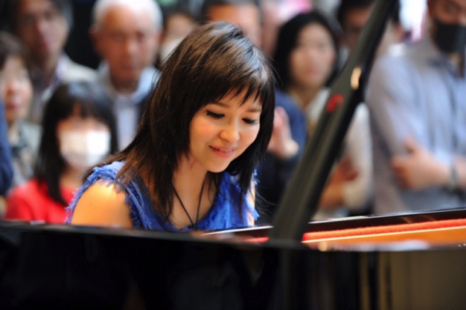 コンテンポラリージャズピアニスト松居慶子が、4月21日にYAMAHA銀座店でインストアイベントを開催した。
