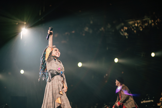 そんなMISIAのライブを平成最後に目に焼き付けようと多くのファンがつめかけ、会場は超満員。ステージ後方まで観客で埋め尽くされ、オーディエンスがMISIAを360度囲む形で、約2時間にわたる公演がスタートした。