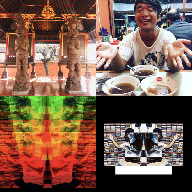 いよいよギグ当日を迎えましたが、朝はバイクでミュージアムへ向かいました。突然の豪雨でビジョビジョに濡れたまま、ミュージアムへ。ジョグジャカルタはインドネシアの中でも独特で、ジャワの歴史を知れて、いろいろと勉強になりました。想像とは、全く違う世界が存在していた感じ……ミュージアムからホテルへ帰るときも途中からものすごい雷と豪雨。道は川のようになり、雨が止むまで、道端の家族経営のレストランで待機して、3時間以上待ちましたが、一向に止まず諦めてカッパを買ってホテルへ戻りました。ホテルでギグの用意をしてThe Tap Houseへ。日本勢はKaoru Inoueさん、Force Of Natureが以前にプレイしたと言ってました。ローカルDJクルーがこの夜のために、映像やビジュアルなど、用意してくれました。感謝!
