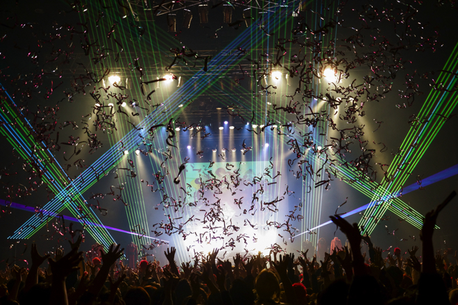 チケットが完全ソールドアウトとなった第二部の「hide FILM ALIVE!」は、1964年に生まれたhideの人生を振り返るヒストリー映像からスタート。約120分にもおよぶこの作品は、hideの活動を年代順に追体験できるように新たに編集された特別映像で、音響や照明も実際のコンサートと同じ迫力で展開された。会場に集まった観客は実際のライブを観ているかのように身体を動かし、hideの姿に大きな歓声を上げていた。