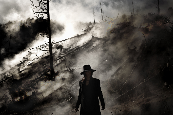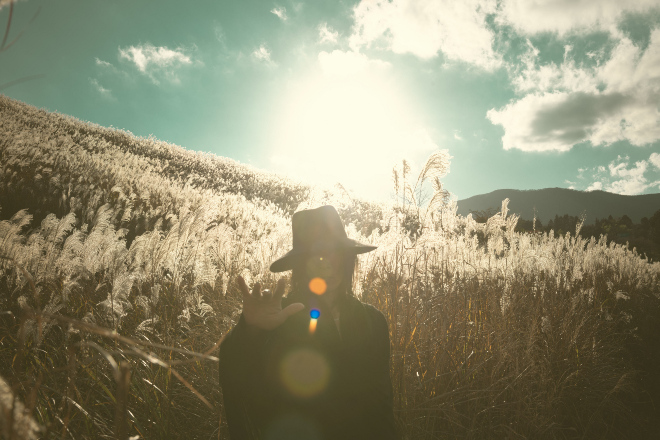 MORRIE:そう。芒が夕陽を浴びて金色に輝いてる風景をね。いろいろと調べたんですよ。自分が具体的にイメージしてる風景に合う場所を。奈良の曽爾高原とかイメージにピッタリだったし、映画『ノルウェイの森』のロケ地にもなった兵庫の砥峰高原とかも荒涼感があっていいと思った。結局箱根の仙石原になったんだけど。美しい世界でしたね。日没間際の夕日に照らされた芒の穂が本当に黄金に輝いていて。撮影に行ったのは、芒のシーズンでいうと大分遅めの11月の半ばくらいだったけど、ちゃんとイメージ通りの景色だった。他にも箱根の各所を味わいつつの撮影だったね。自然の粋が凝縮している場所だなと改めて思いました。温泉は特に興味がないんで、そこはあまり個人的には魅力ではないんだけど、火山から湖から山から岩から森から芒から、一所に集中していて素晴らしいところです。