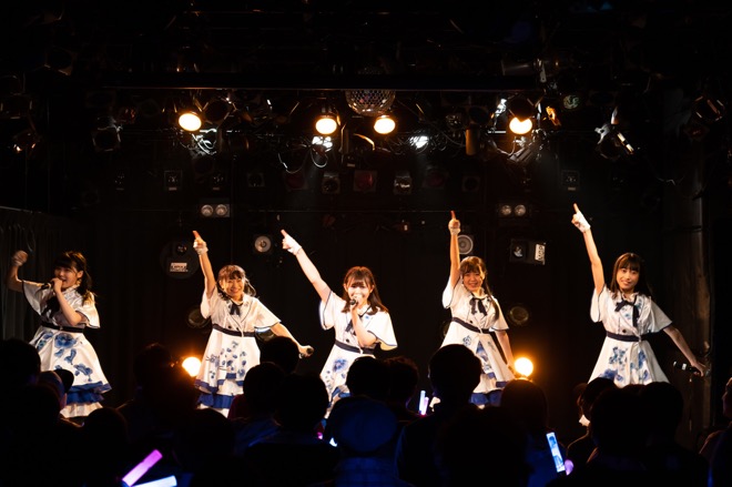 続く「青春のラップタイム」はNMB48のカバー曲。元NMB48の沖田彩華プロデュースという由緒正しき系譜に加え、精彩を放つパフォーマンスに初々しくキュートな笑顔を取り込むキャパシティーを持った新人グループであることが感じられる。オープニングからわずか2曲を前に広がった会場の空気は、期待が現実のものとなったオーディエンスのざわめきだ。