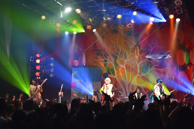 ステージに広がっていたのは、アルバム『Before』のCDジャケットをそのまま再現した舞台。そこへ現れたメンバーたちは、花少年バディーズのカバー曲「Balloon」からライブをスタートさせた。キラキラと眩しい光を放つ音符の一つ一つが身体へ差すたびに、ワクワクとした気持ちが膨らみだす。大きく膨らんだ笑顔でときめいた心は、そのまま彼らの演奏へ導かれてハートのバルーンとなって青空へ飛び立った。
