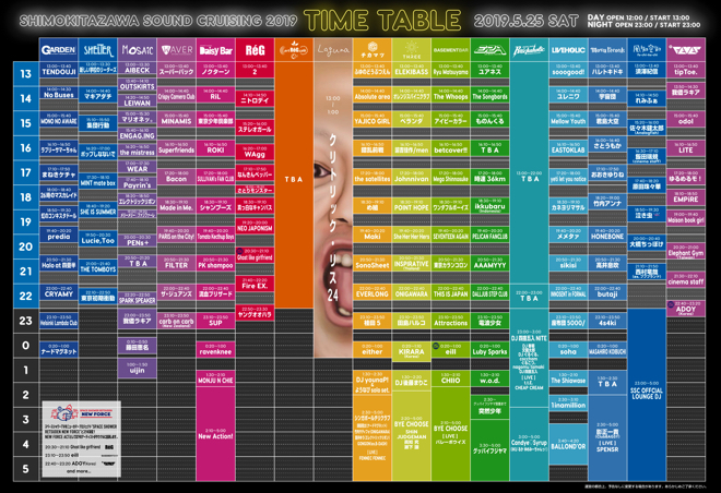 5月25日(土)に東京・下北沢のライブハウス17会場で同時開催されるサーキットイベント<Shimokitazawa SOUND CRUISING 2019>の第七弾アーティストおよびタイムテーブルが発表となった。