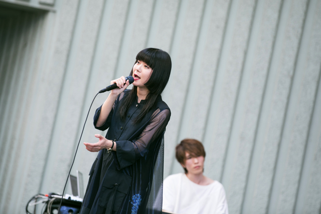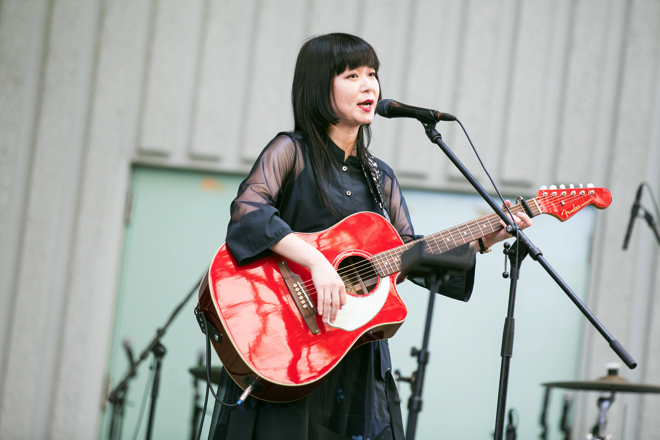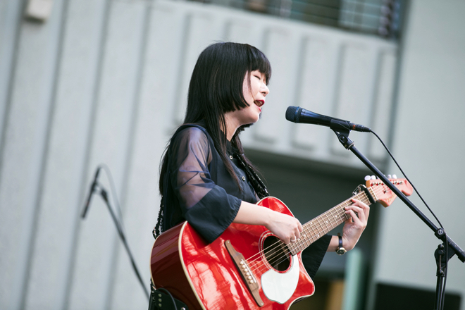 5月にして30度超えという夏のような日差しの正午、トップバッターとして登場するのは、FLiPのSACHIKOがバンドの活動休止後に新たにスタートしたソロ・プロジェクトMAISON“SEEK”。今日はMAISON“SEEK”として初の野外ライブだという。
