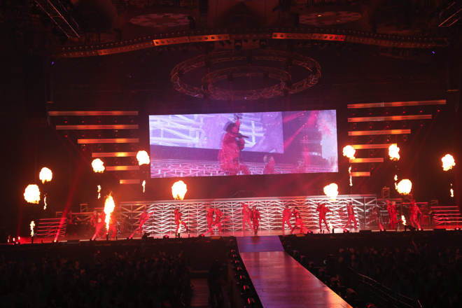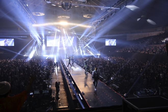 続けてTHE RAMPAGEはグループの代名詞であるヒップホップサウンドが色濃い「HARD HIT」、ラテン・ミュージックをTHE RAMPAGE流に昇華した情熱的なダンスナンバー「Fandango」や「LA FIESTA」で一気に畳み掛ける。サポートメンバーも入れず、16人がステージや花道など会場の隅々まで散らばり、集まったファンにエネルギーを届けるべく縦横無尽のステージングを披露し会場を盛り上げる。