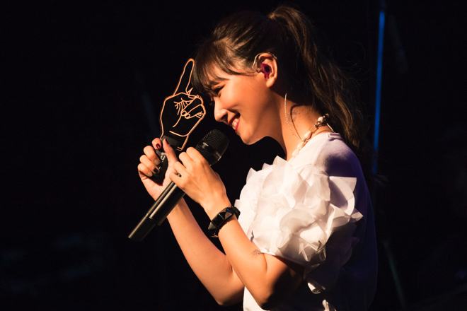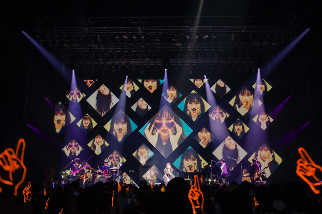 そして千秋楽神戸公演含むセットリストBパターンでは、ライブハウスでのライブを想定したバラードとアップテンポの緩急を絶妙に活かしたセットリストとなっていた。中盤「プラネタリウム」「金魚花火」「甘えんぼ」といったヒットバラードで魅せると、後半からは「PEACH」「CHU-LIP」「SMILY」「Happy Days」と、一気に畳み掛けて会場を熱気の渦に巻き込んだ。