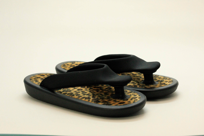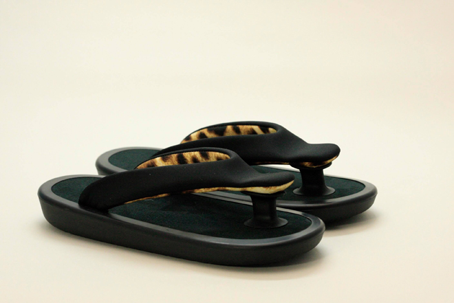 今回発売するサンダルは、「鼻緒の両面がヒョウ柄のタイプ」「鼻緒の裏面のみヒョウ柄のタイプ」「インソールの部分がヒョウ柄のタイプ」の三型。どれもソフトな手触り、上質の素材感、優れた耐久性、適度な通気性・透湿性、など沖野のこだわりが感じられる仕様になっており、この夏のマストアイテムと言えるだろう。