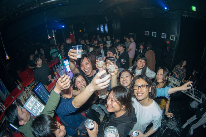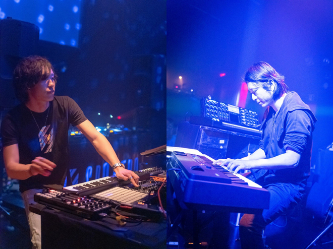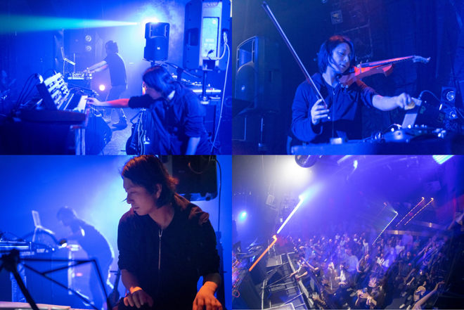 メインフロアでプレイする初期メンバーであるHOWAKO、先日デビューアルバムを同レーベルからリリースしたばかりのChrumi、さらにラウンジのDJによって早い時間から会場の熱量が感じられた。見所となるHiroyuki Arakawaと本アルバムでコラボレーションしたShinya Miyachiとのライブセットの時間に向けて、期待感を高まる。ピークに向かう時間帯には200名に近い来場者で、会場となったCLUB ASIA全体が活気付いており、Hiroyuki Arakawaの登場と同時に、フロアから声が上がった。