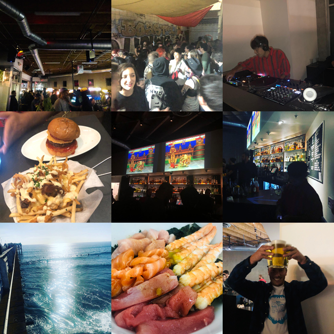 ロサンゼルスのEighty Twoは、DJハーヴィーとも仲良しのOsamuと、Love Fingersのレーベル“Esp Institute”からリリースしているTavishとのギグになります。二人ともフレンドリーで最高に愉快。そしてベニューはゲームセンターでロサンゼルス独特な雰囲気を醸し出しています。二人ともディスコからハウスのファンキーな選曲で、ミックスセンスもありナイスなプレイをしていました。僕も二人に合わせつつ、違う選曲を心掛けてプレイしました。エレクトロ〜ハウス〜ディスコを軸に2時間プレイして、ラストまでB3B。お客さんはゲームをしながら、踊ったり、DJブース前でもお客さんが踊ってくれて終始楽しい時間となりました。終わってからみんなでWarehouseに行ってダンスして楽しんだ後にキャロルとサンディエゴへ帰宅し就寝。ってことで、